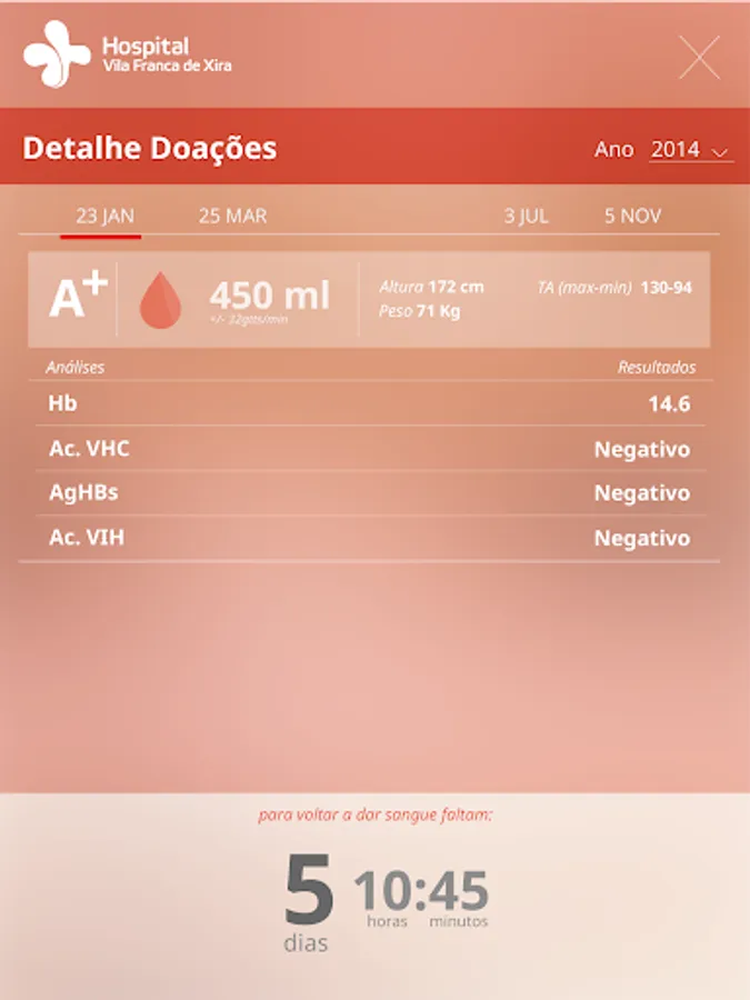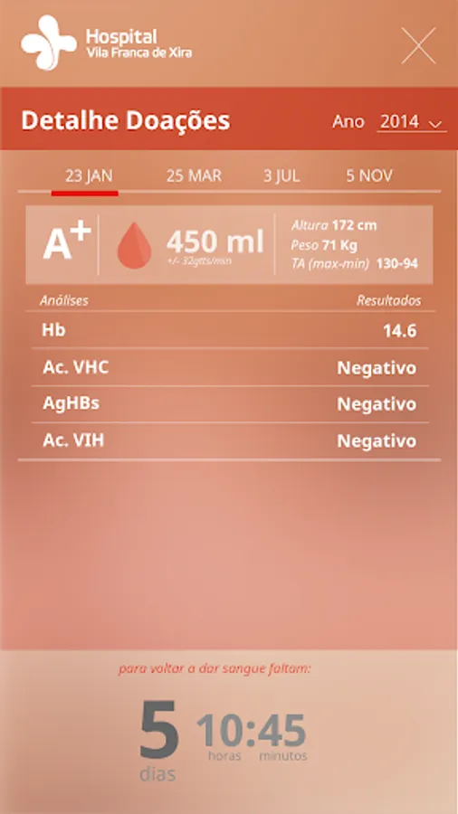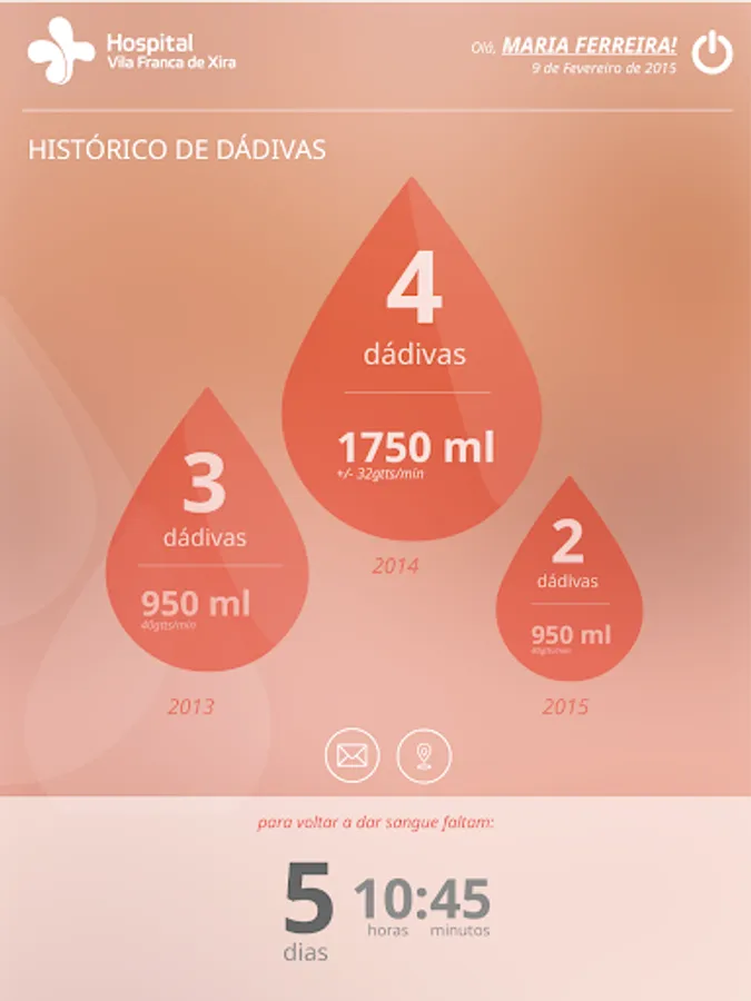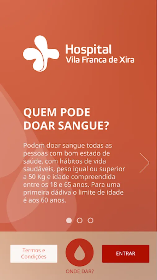 With the application of the Blood Service of the Hospital Vila Franca de Xira can access your personal page and get all the essential information while Giver, particularly from harvests prior records, test results, state exemption from user fees (according to legislation), personal notifications, among many others.
