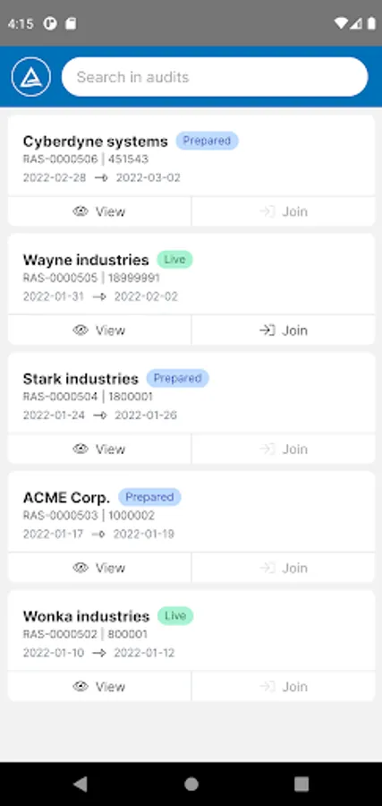 The RAS application is used on mobile devices to participate in audit sessions. Audit participants can use their smartphone or tablet as a mobile camera to conduct audits in production lines, warehouses or outdoors.