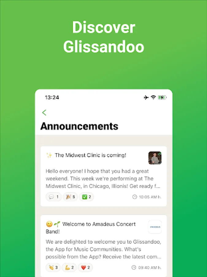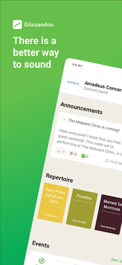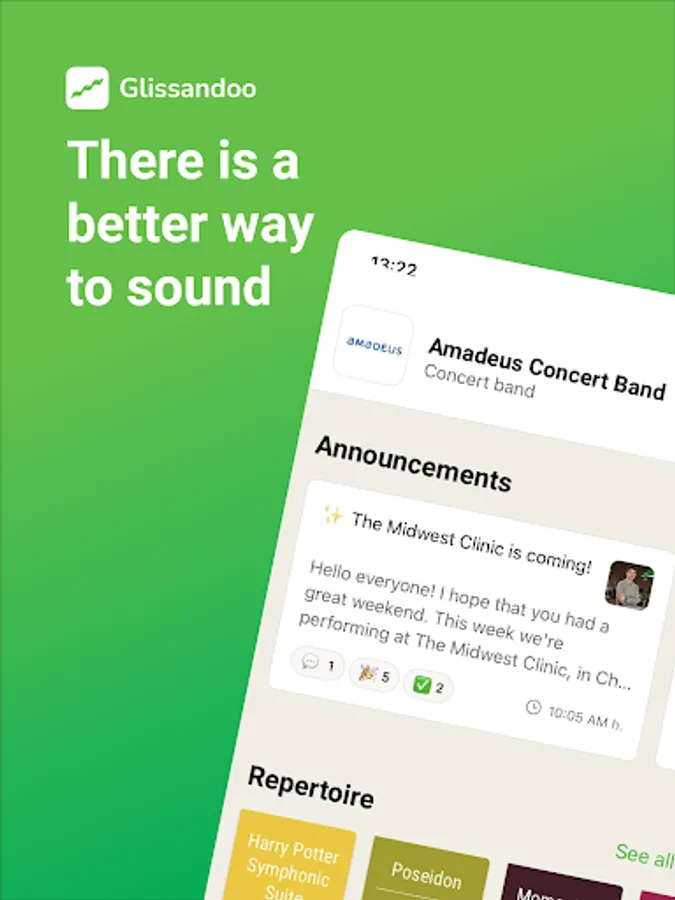 Glissandoo is an innovative solution for managing musical groups. Create your community, connect with members and coordinate your ensemble in the easiest and simplest way.