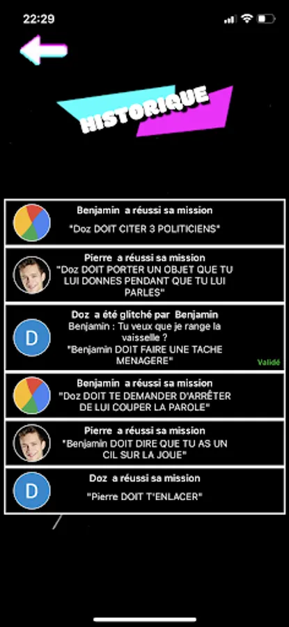 To do this, fill in the player in question and the mission you think you have found. The player accepts or refuses the glitch. All players see their response in the history.