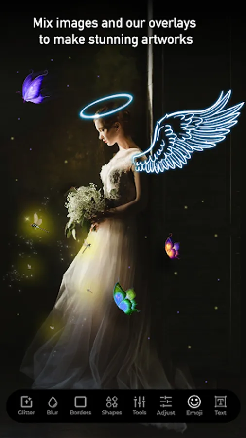 With this photo editor app, you can edit your photos by applying glitter effects. It comes with a unique combination of features that include photo glitters, glitter effects, photo editor, and other photo effect features. Add magic to your pictures with different styles of glitter effects like Bokeh Effect, Sparkling Effect, Shine Effect, Bubble Effect, Love Effect, Bird Effect, etc. Your photo can be enhanced with stars, glitter, and different sparkles.