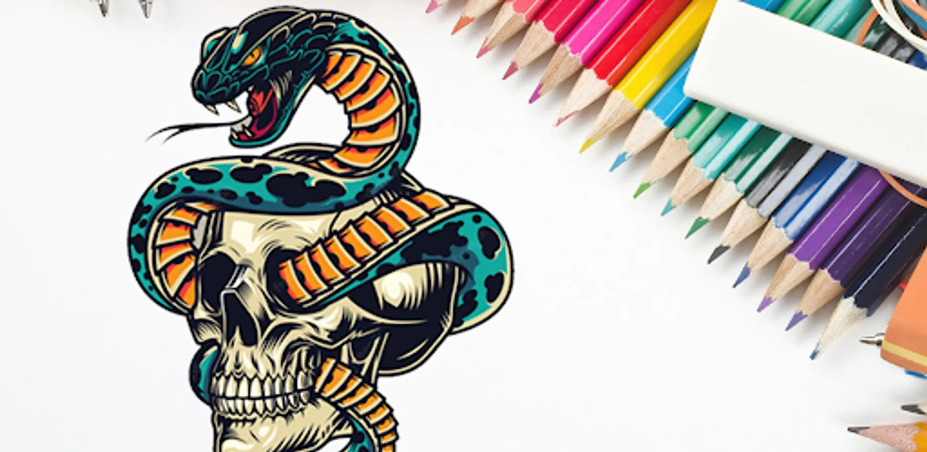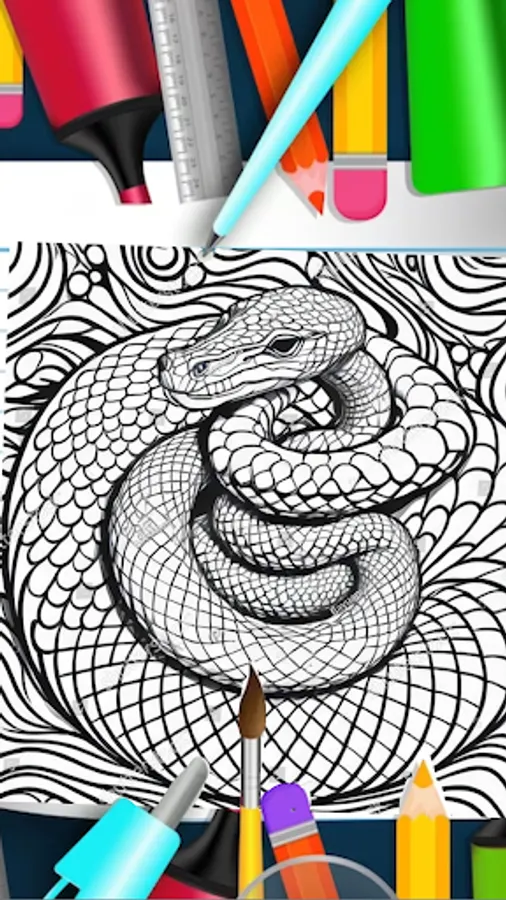 Discover our anti-stress coloring book for adults, immerse yourself into the pictures of reptile snakes, select the image and give it its color. See how your mood changes after our color therapy. Art therapy - while coloring our mind rests, coloring is like meditation, lets you forget about everyday worries.