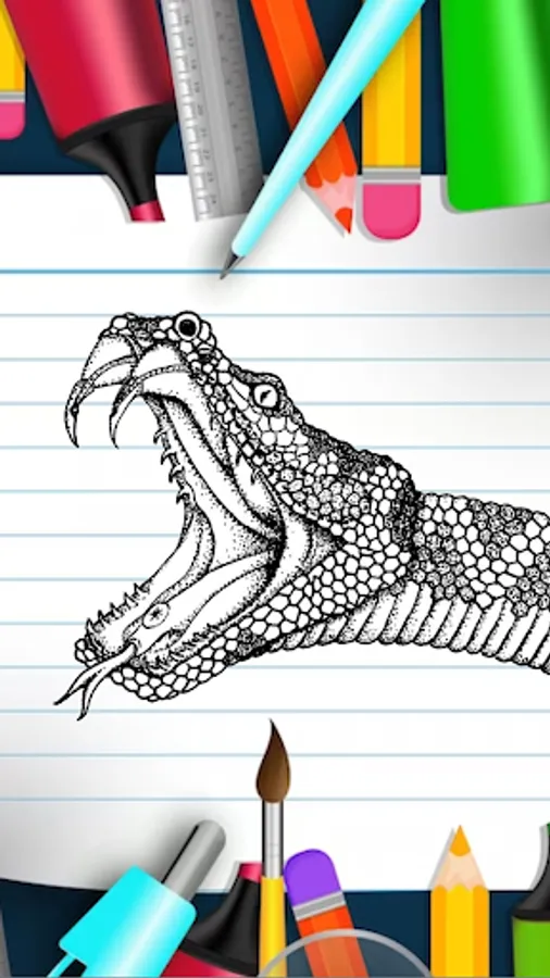 Glitter Snake Drawing app was built specifically foradult. It has an easy to understand interface and everyone can play this Glitter Snake Drawing. They'll have fun using the Glitter Snake Drawing, painting, and learning games at their disposal, meet teh giant phyton and poisonous king cobra!