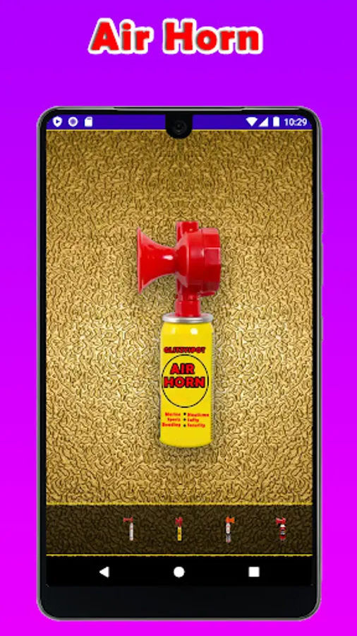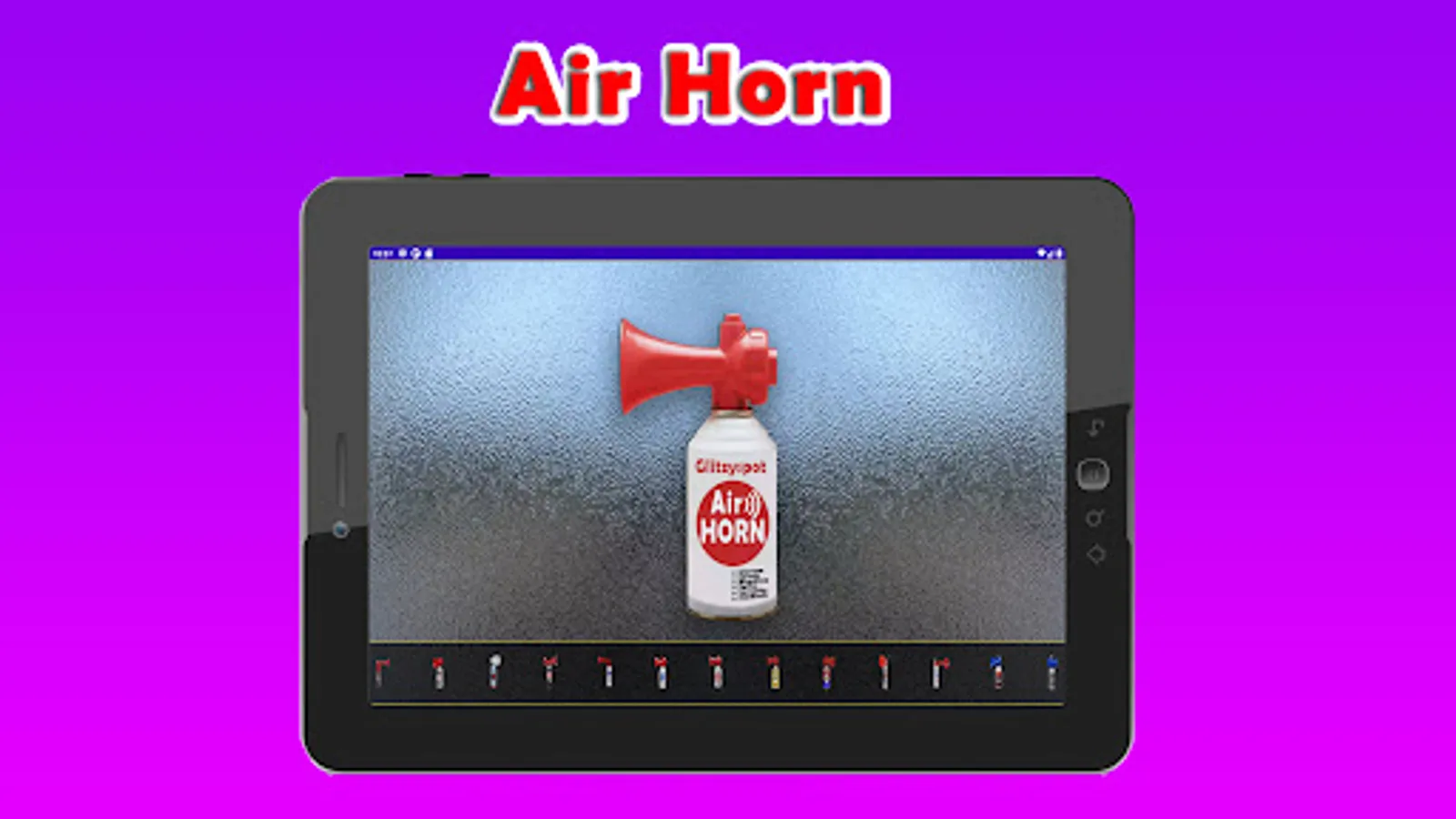 β΄ open airhorn app choose the air horn and touch the screen.