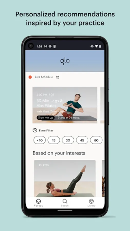 For You is your own unique corner on Glo. Here you can find class suggestions, easily access your go-to practices, view curated class collections, and stay up to date on our latest classes and community favorites. The more you practice, the more personalized this page becomes.