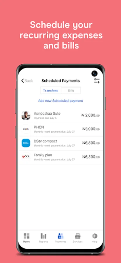 - Schedule one-off or recurring gym, electricity, data, or any payments you've committed to
