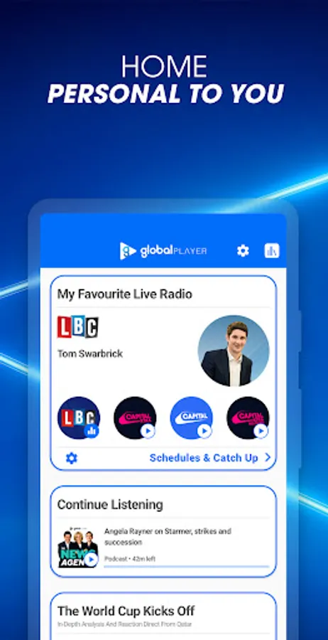 Global Player features a personalised homepage where you can set your favourite UK radio stations and tune in to radio stations like Capital Dance and Gold Radio, continue listening to podcasts, and catch up on anything you've missed. You can receive personalised recommendations for podcasts and playlists, and stay up to date with the latest news. Global Player is designed to provide you with more than just radio, with podcasts, videos, and playlists all available in one place to stream for a great radio entertainment.