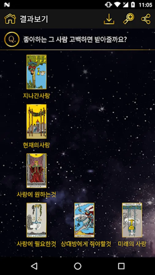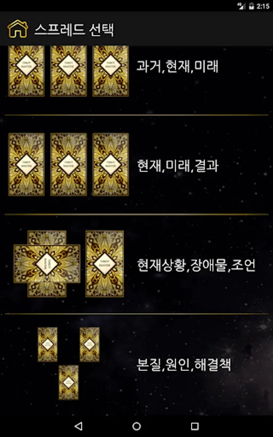 [Tarot Master] consists of a total of 78 cards and uses 16 spread methods.