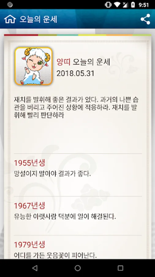 We also provide today's total luck for each 12 zodiac signs and horoscopes for each year of birth.