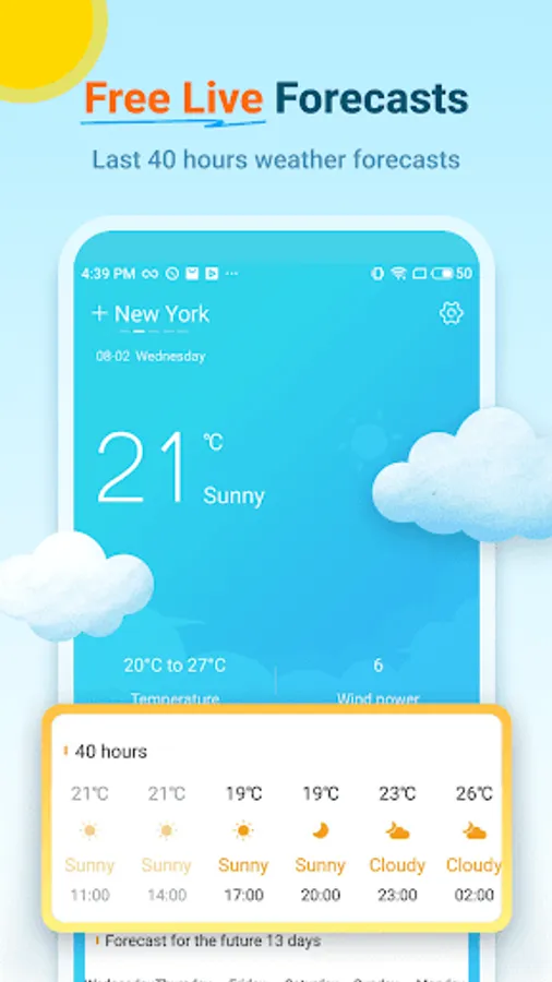 - Live weather forecast for free: this weather and climate app offers daily weather, hourly weather forecasts and 14 days weather forecasts. Meanwhile, it also provides interstate travel weather forecasts and forecast weather and wind.