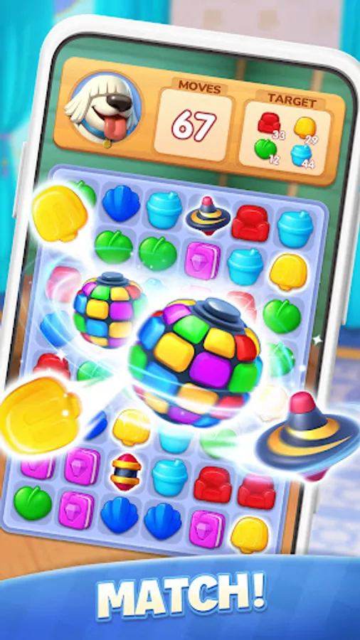 Achieve match-3 goals within a given number of moves. More areas will be unlocked as you progress!