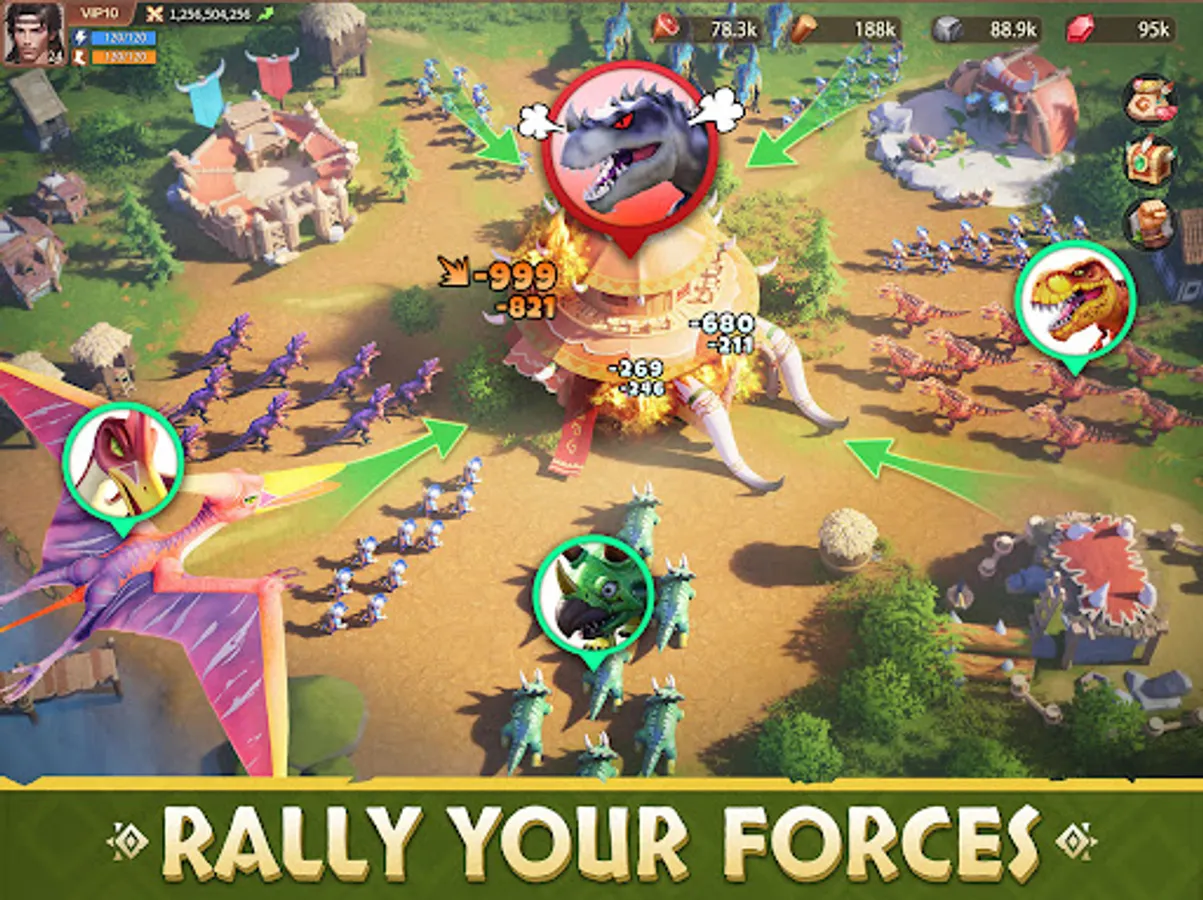 You can capture and tame a huge variety of dinosaurs to fight alongside your forces. Upgrade your dinosaurs to become more powerful, and dominate the battlefield with their unstoppable might!
