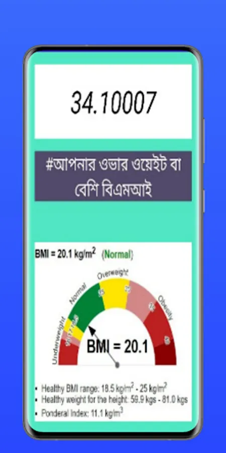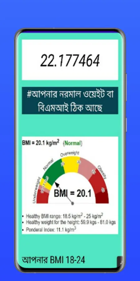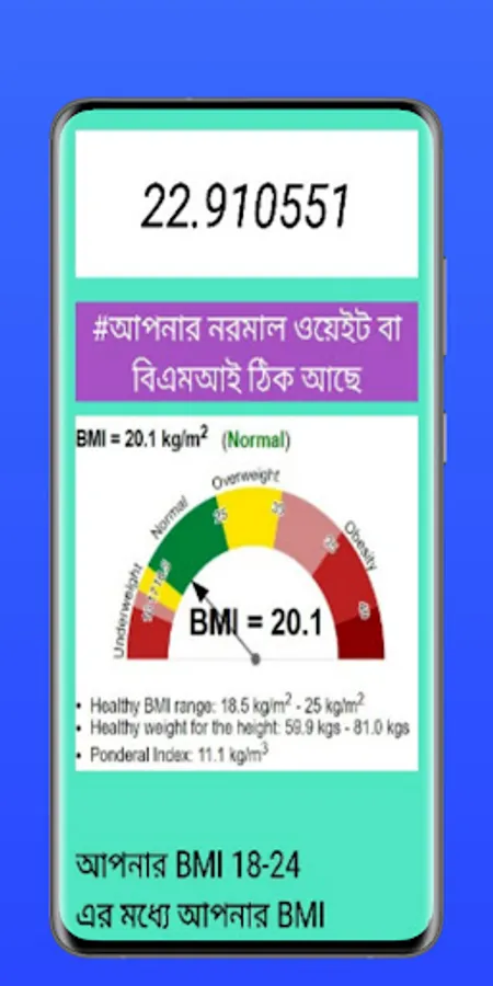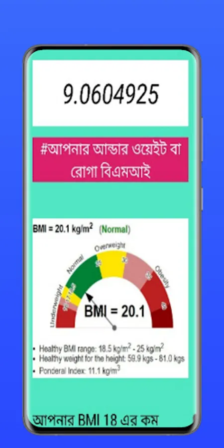 BMI Calculator is the app which allows user to calculate their Body Mass Index in one app. It provides the accurate measurement based on the weight and height provided by user along with age.