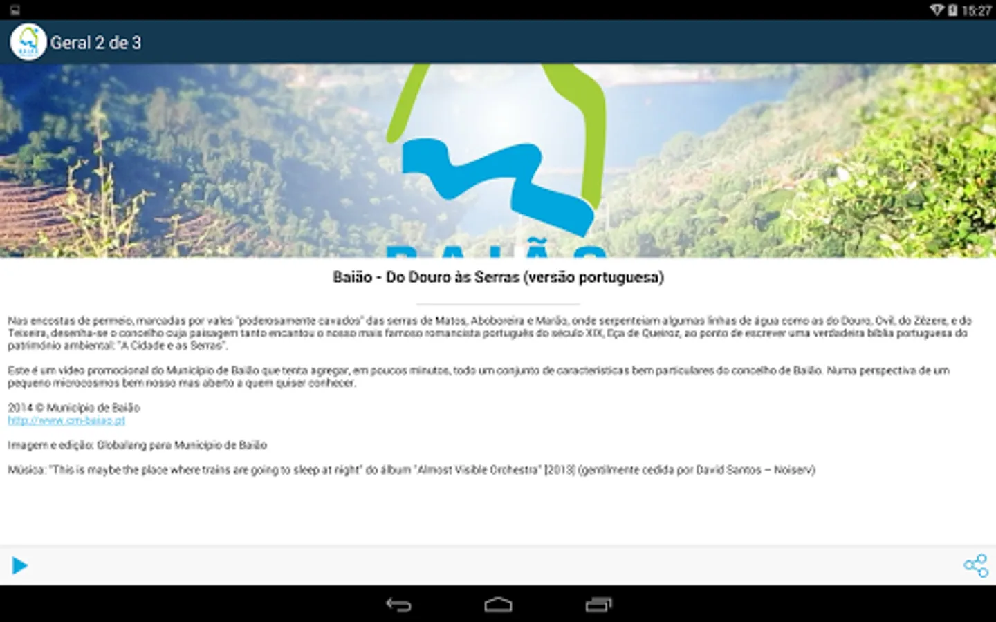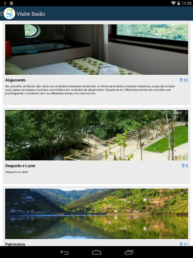 Compatible with most "smartphones" and "tablets", this application of the Municipality of Baião gives access to news, events calendar, pictures and videos galleries, information at the level of hotels and restaurants and points of equity interest.