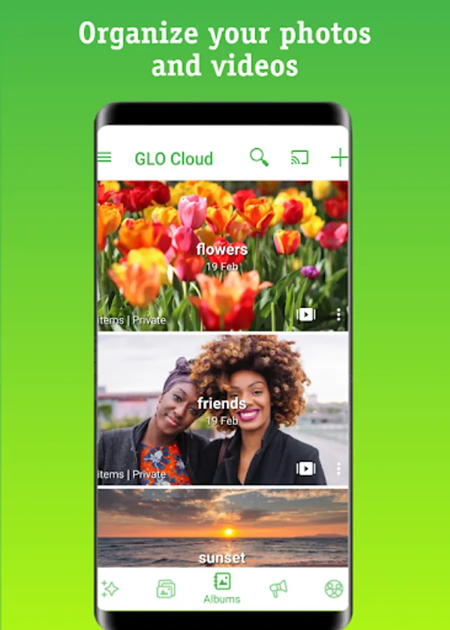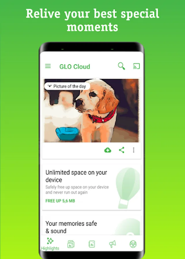 Glo Cloud Storage is a personal cloud application that backs up automatically your photos, videos, music and documents in one place. All your digital life secure and private, you never have to worry about losing it.
