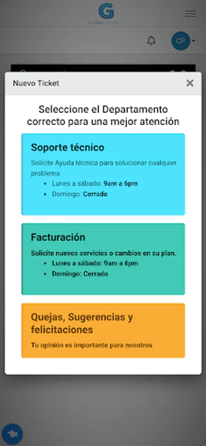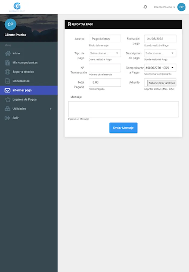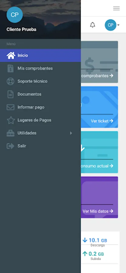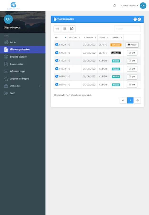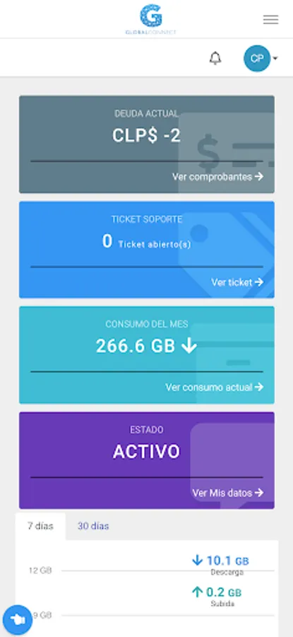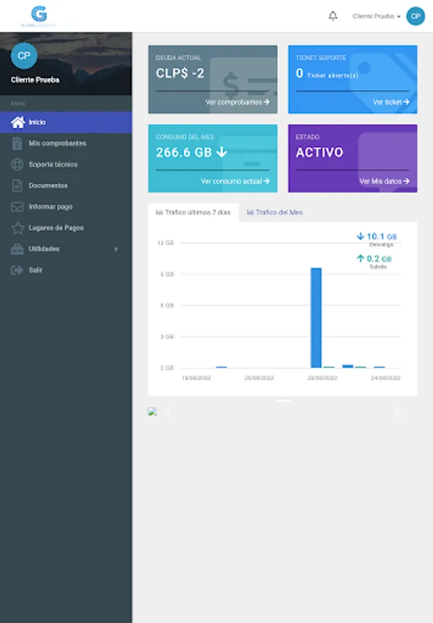 Here you can review your payment receipts, download your invoices, report network problems, view your internet consumption, open a support ticket, among other functions.