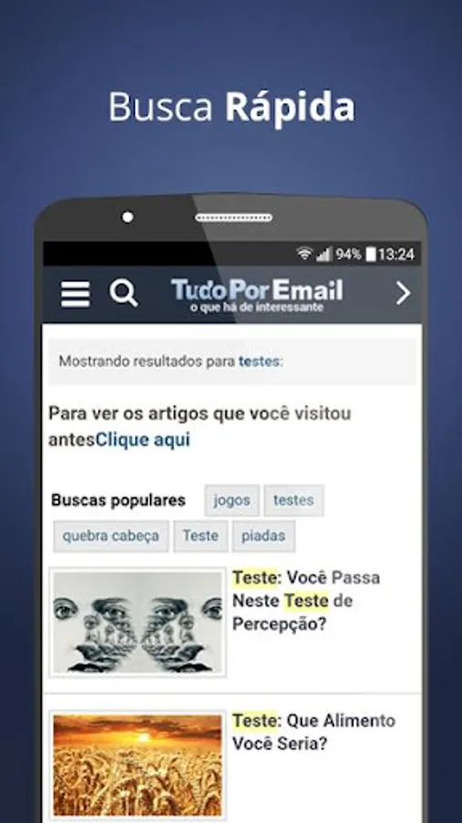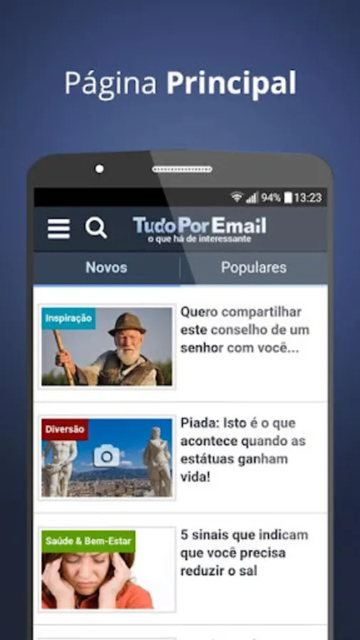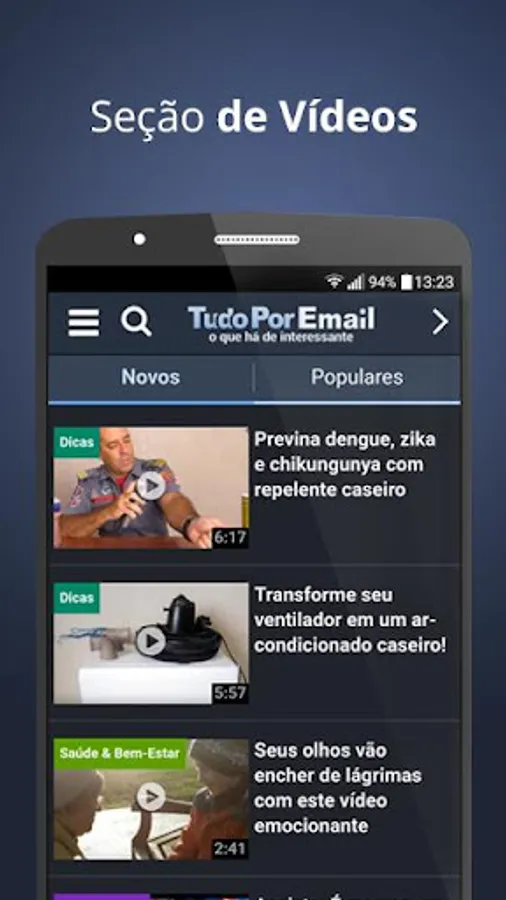 TudoPorEmail is the ideal application that will present you the best content on the internet for you and your whole family. In this diverse application, we offer several options for information and entertainment with various themes and subjects of high quality, constantly updated.