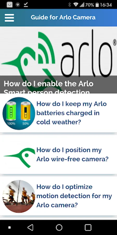 This app is designed to show what possibilities you have with the Arlo cameras.
