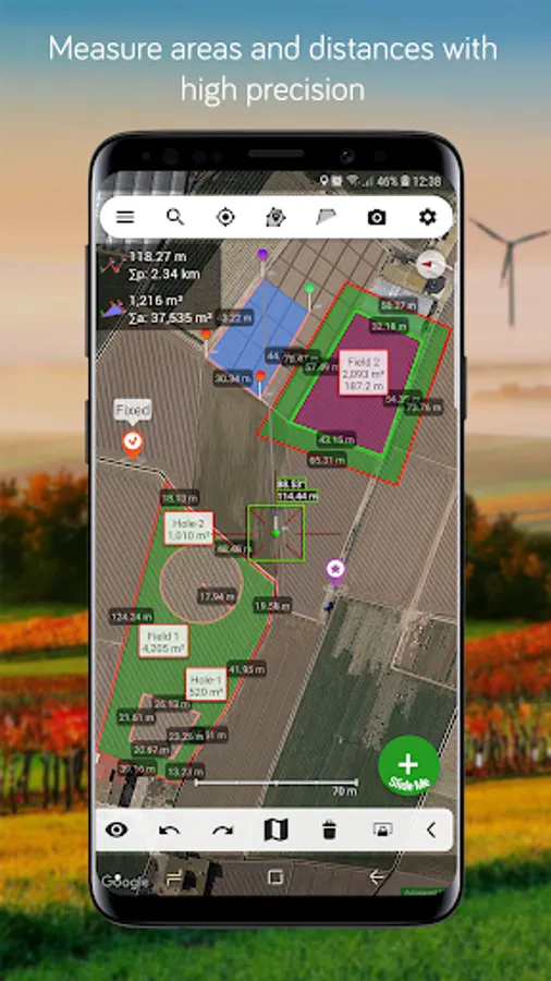 Agro Measure Map Pro lets you quickly and easily measure multiple distances, perimeters and areas with laser sharp precision! It even takes into account the curvature of the earth’s surface. Use it for small areas or large, then share your findings via any sharing app you have on your device.