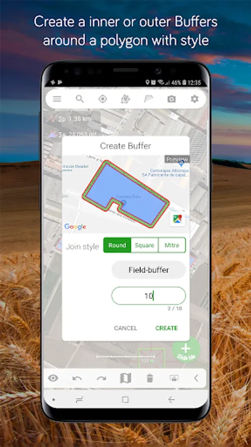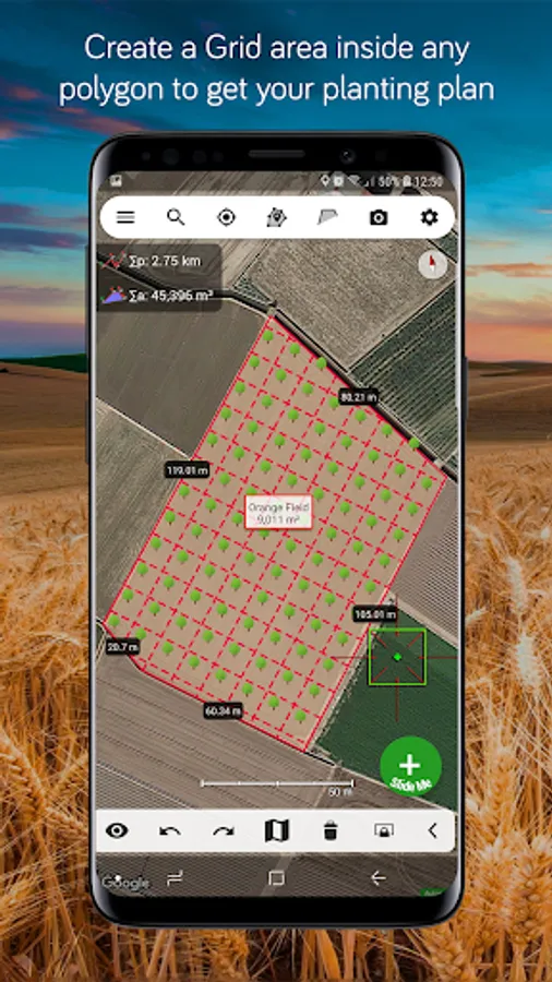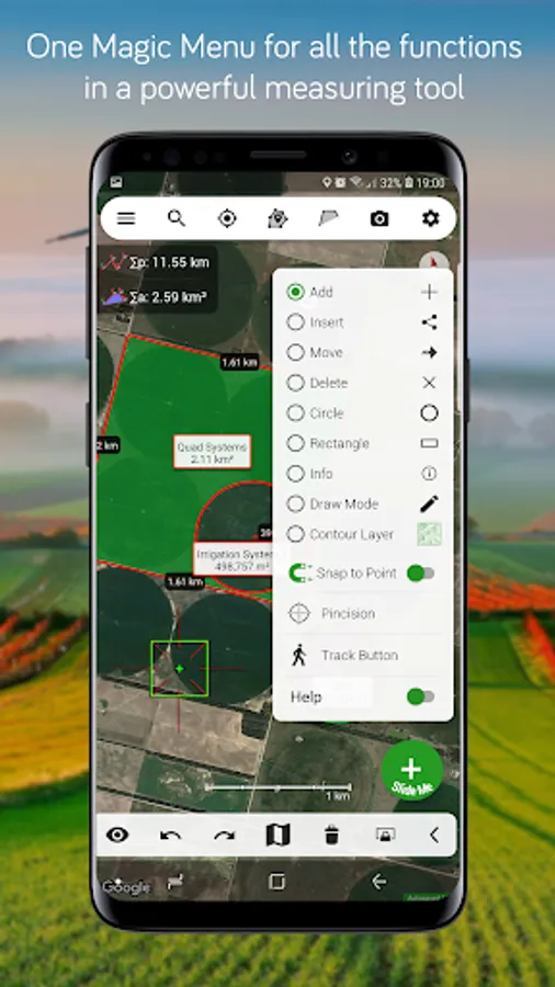 That’s what Agro Measure Map Pro is for, to put a powerful, portable measuring tool right in the palm of your hand. Your Android device can now provide you with totally precise measurements of any distance, from as small as one tenth of a meter to as big as thousands of kilometers or miles, even taking the curvature of the earth’s surface into account when measuring. It does all that, fast and effortlessly.