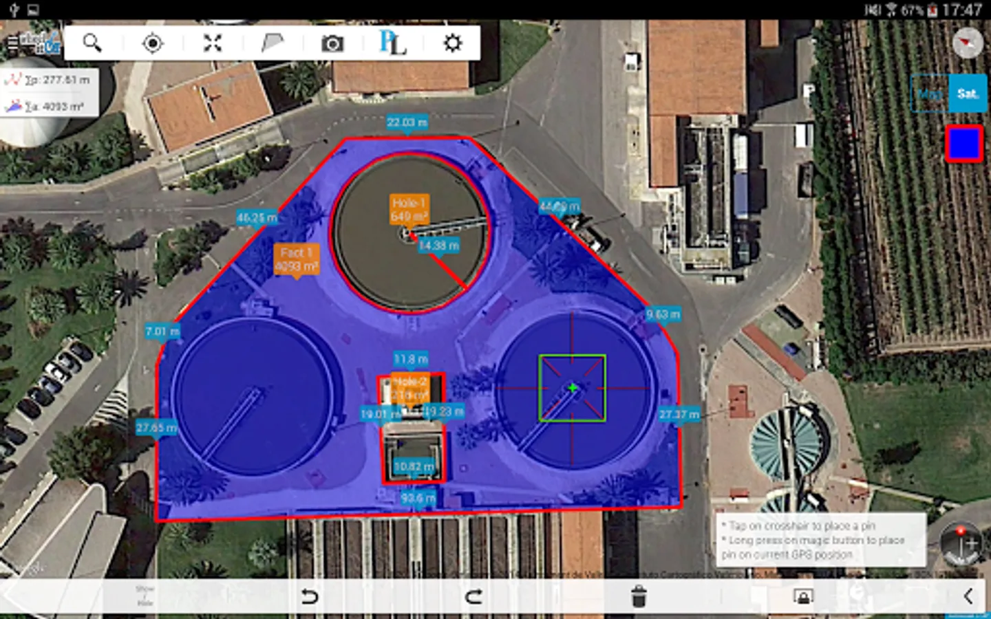 Measure areas and distances over multiple map sources with laser sharp precision. Mark potholes, measure parking lots and fields for pavement works and agriculture, possibilities are endless.