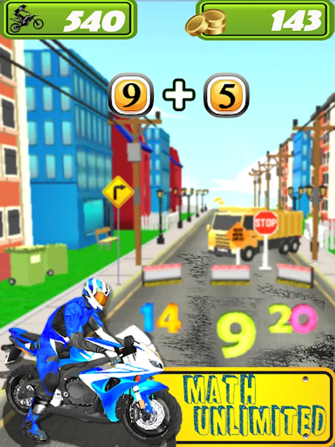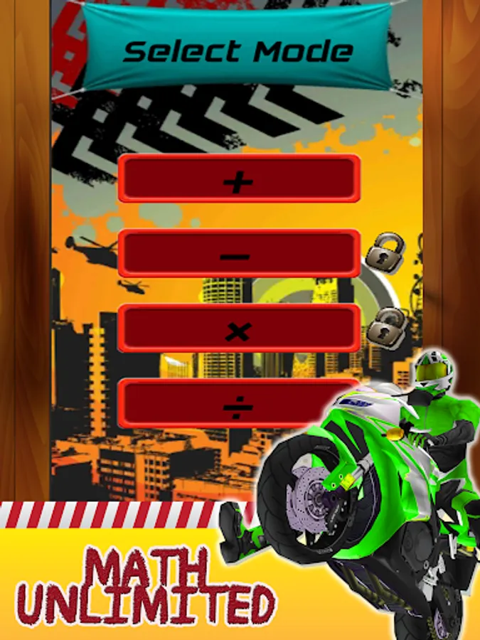 Unlimited Math is an educational app that helps children ages 3 and above master addition, subtraction, multiplication and division skills. Data has been recorded and documented proving an increase in these mathematical skills. For more information on specific data, please visit our company website. Math Unlimited keeps users engaged with a rather unique endless running gameplay theme. Users will be able to ride through a colorful city themed environment with a character of their choice on a motorcycle collecting coins and the correct answers to math equations. Math Unlimited has proven to be an exciting educational game that helps your child rapidly master addition, subtraction, multiplication and division skills by sight, touch, and sound.