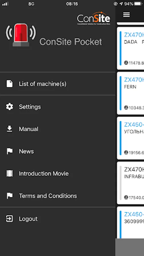 ConSite Pocket is an app for customers & dealers to view ConSite Alarm & Monthly report of their ConSite contracted machines.