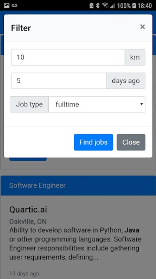 Find jobs as you move. Each time you change location, just press "Find Jobs" button to fetch available job opportunities at your current location within 1km to 200km radius.