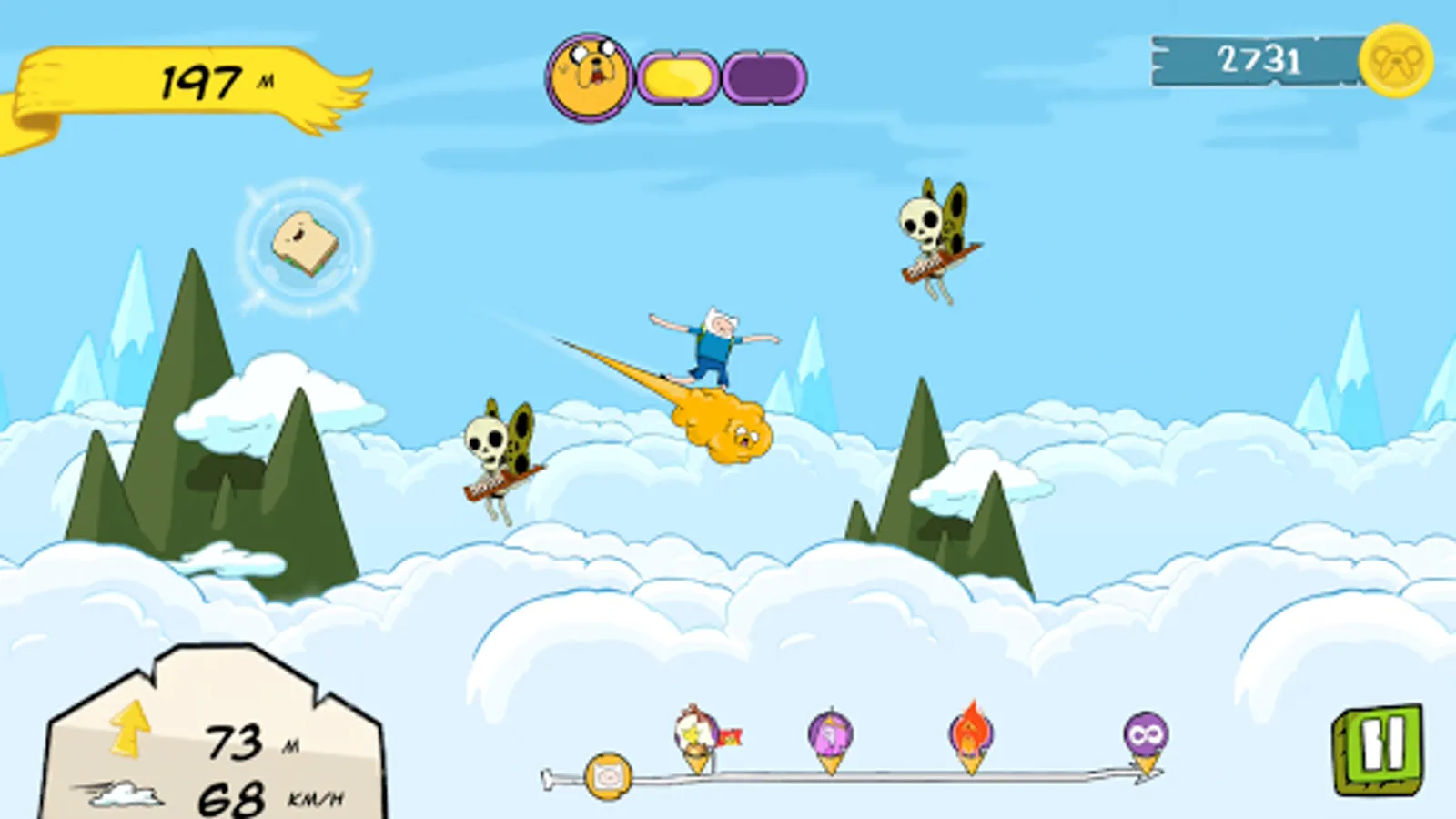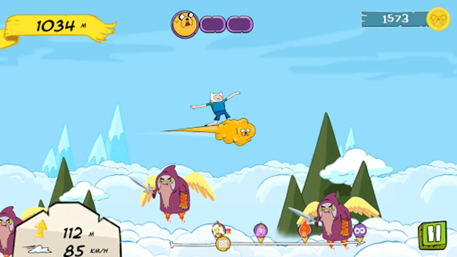 Help Finn and Jake thwart Ice King by warning the princesses. Use a giant catapult to launch Finn and Jake across the Land of Ooo. Fly by the castle of each princess and let them know they are in danger.