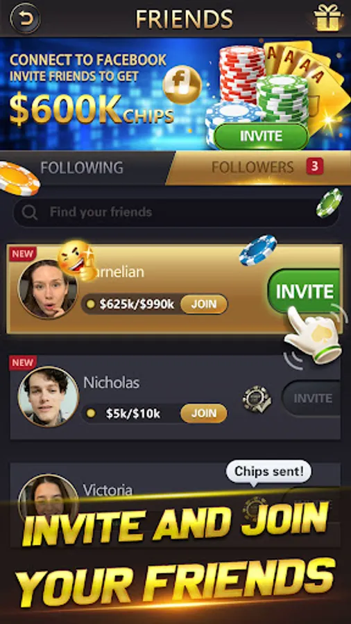 Welcome to POKER LIVE, play free online poker with your friends. Show your best hand and become a global poker star playing Texas Holdem.