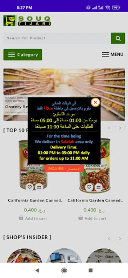 Souq Tijari the grocery delivery app in Salalah now allows you to use our app to order easily via your android smartphone.