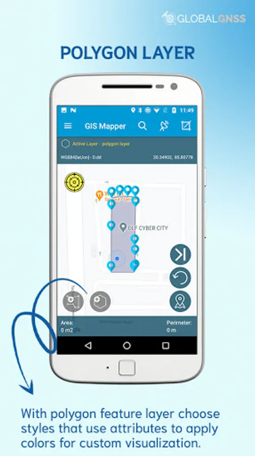 With the GNSS/GPS connection, GIS Mapper survey application is used for GIS data collection. This application is not only enabling the GIS data collection to be faster and efficient in various types of surveys but also helpful to a professional land surveyor to determine the position of areas by measuring angles and distances.