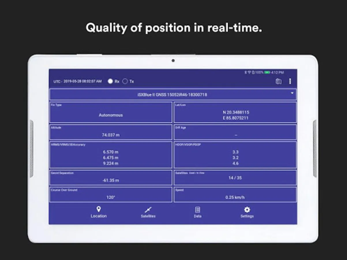 - Display location information and quality of the position data in real-time with sub-meter/ Centimeter accuracy