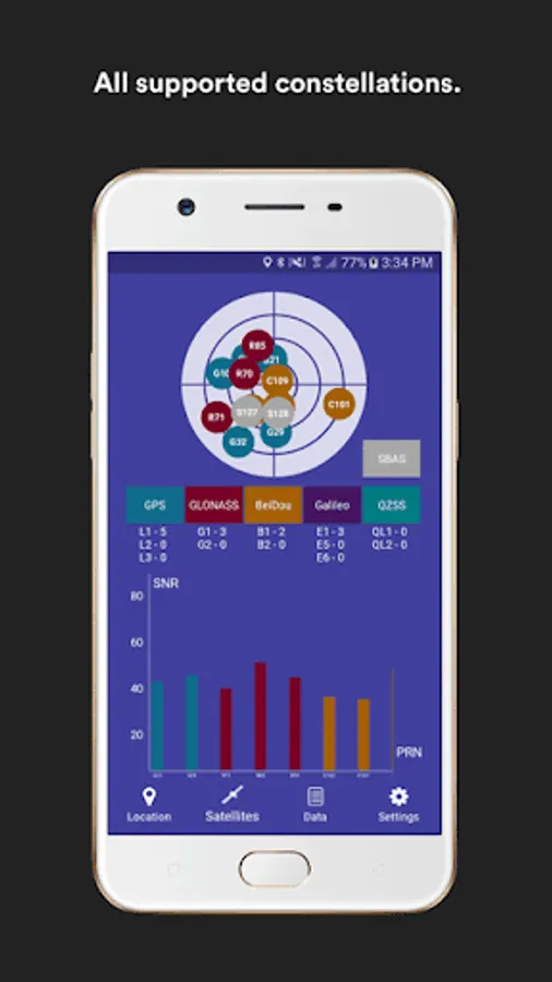 - Constellation information for GPS, GLONASS, GALILEO, BEIDOU, QZSS, SBAS SATELLITES.