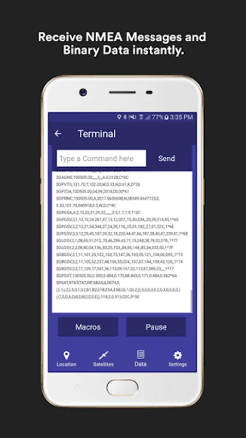 - Log all received NMEA messages and BINARY DATA on Terminal window.