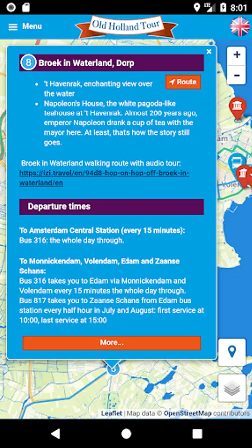 Get on board at Amsterdam Central Station and visit Zaandam, Zaanse Schans, Volendam, Edam, Marken, Monnickendam and Broek in Waterland. We offer free Wi-Fi.