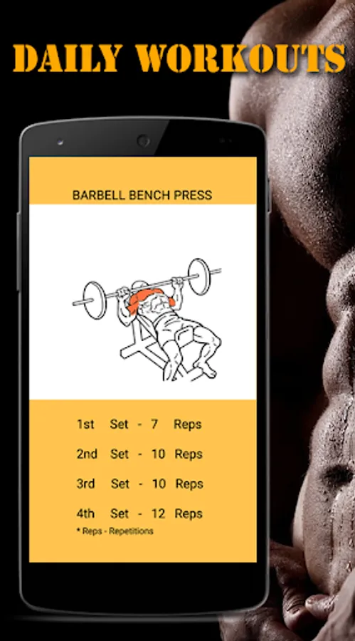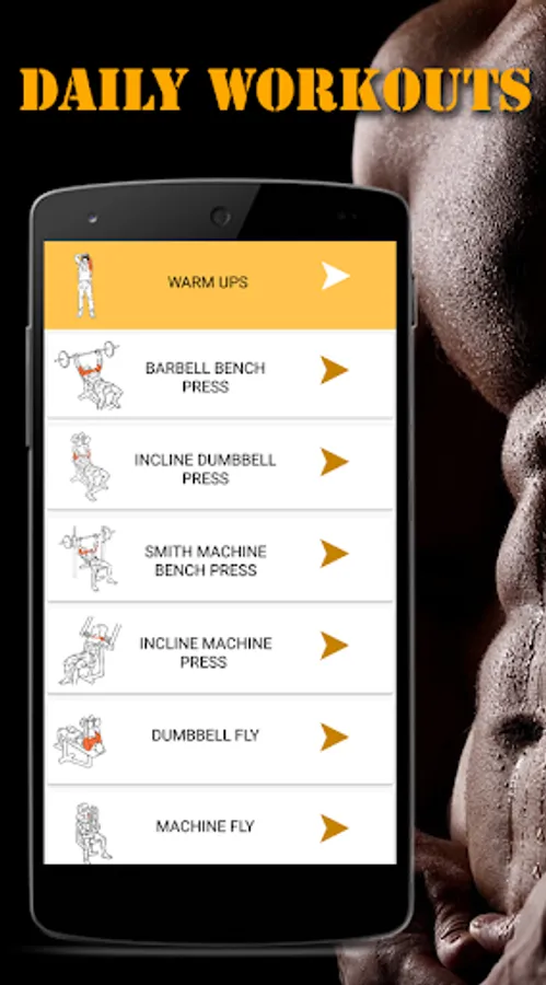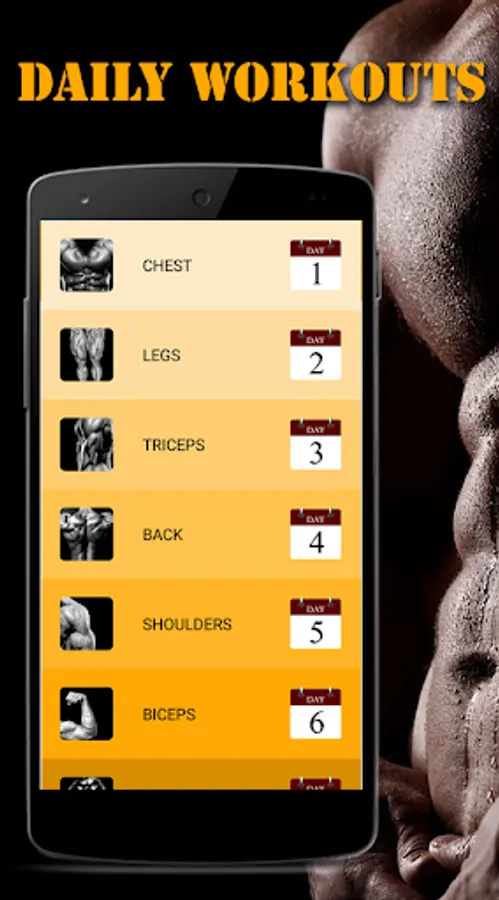 - The daily fitness workouts - body building app shows you the exercises with detailed instructions below the images. The exercised part of the body is highlighted with orange colour so as the user to know on what part of body is being worked out.