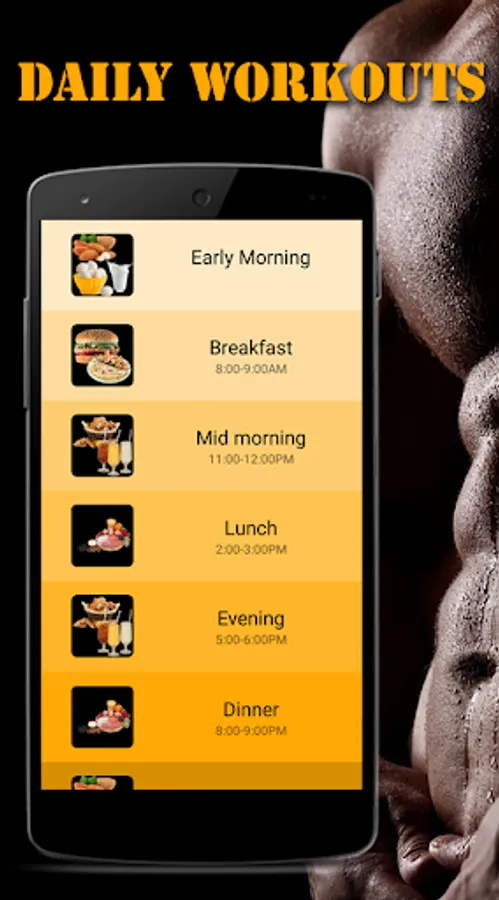 - A complete diet plan indicator with the amount of protein and calorie to take. It provides timely diet chart from morning to evening including pre-workout and post workout meals to follow