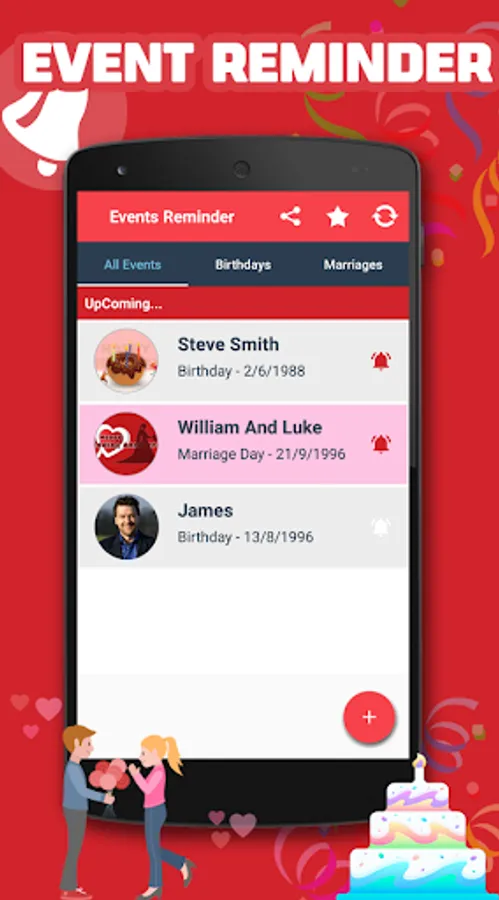 Event reminder app is the simple and easy reminder app designed to remind you about your friends, family and loved ones birthdays and marriage anniversaries. No other option to forget important dates of your friends and family, a perfect reminder app to keep you on track about birthdays and marriage days. During busy schedules it’s not easy to remember the special occasions, a notification with alarm tone is enough to remind the special days