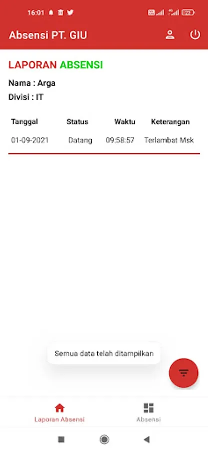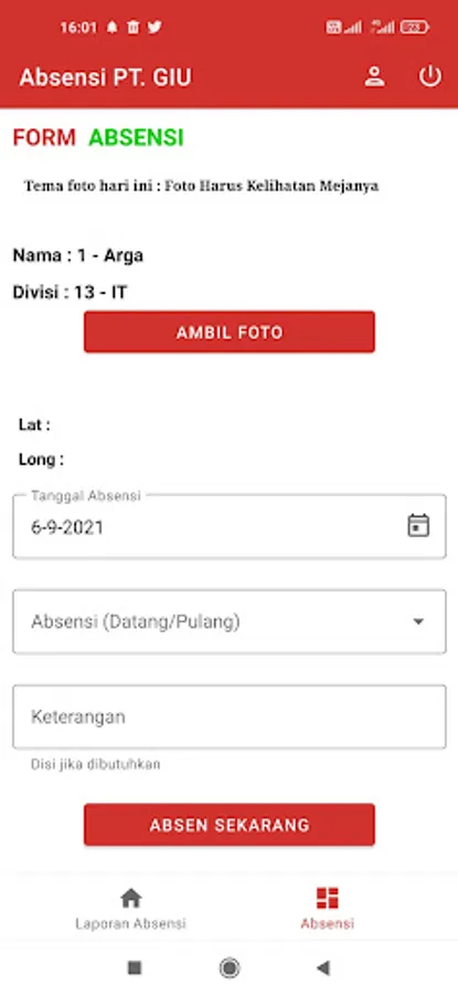 PT GIU Presence is an application developed by PT. Global Insight Utama to be used by each employee to attend and go home.