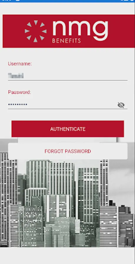 Insert the same username and password you would use to log into the Membership portal on the NMG Benefits Web Portal to access the features in this App.