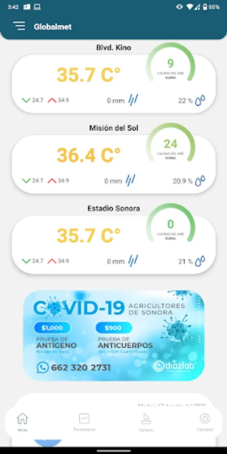 With CityWeather you will be able to know the weather in different parts of the city with stations located in strategic areas.