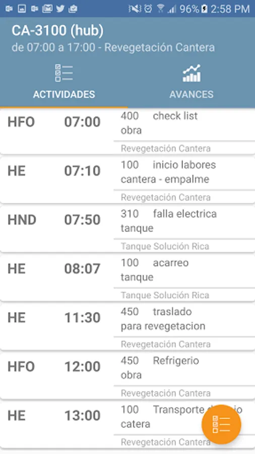 Work activities classifying records for uptime, time unavailable, standby or out of control.