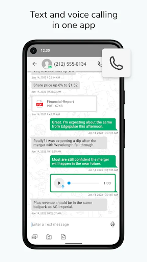 Global Relay Android Text works with voice call recording for Corporate-issued devices, so all conversations and calls are archived as per financial industry regulations. To send texts and synchronize text data across multiple devices and applications, users must grant Send_SMS and Call log permissions.