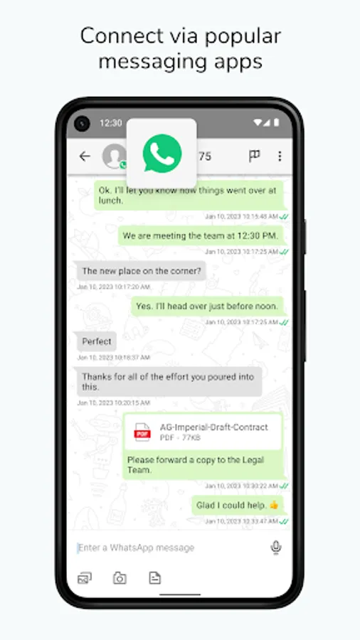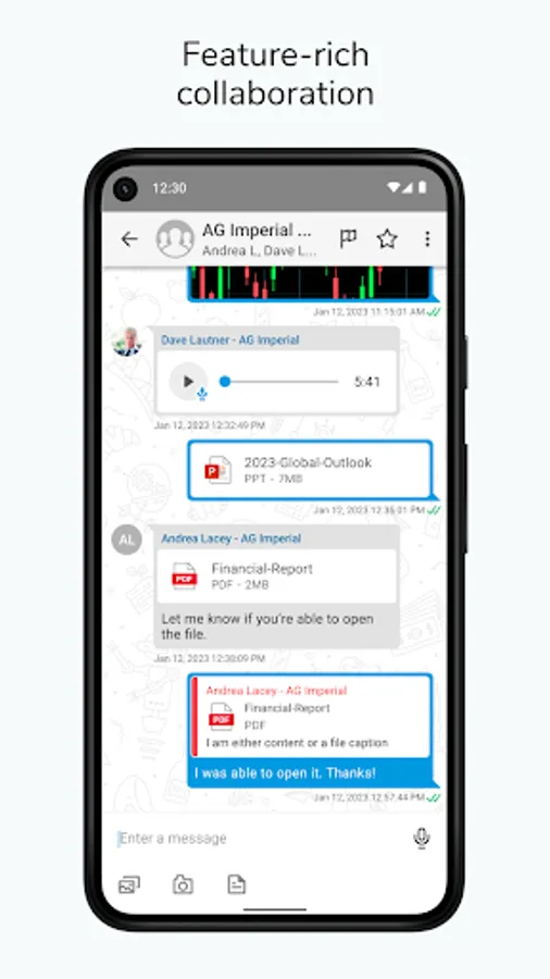 Global Relay for Intune has all the functionality of our base application, Global Relay App, including support for sending and receiving communications via personal devices (i.e. instant messaging, text, voice, WhatsApp) and corporate devices (i.e. Android Text, voice, and WhatsApp) with customers, colleagues, and industry peers.