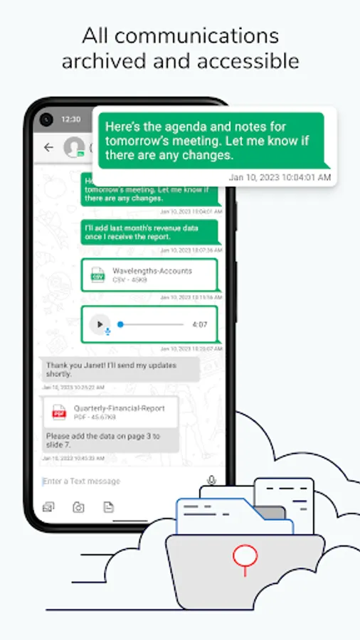 All data, including Text and voice, sent and received via Android Text and Global Relay App, as well as call logs, are archived for compliance.