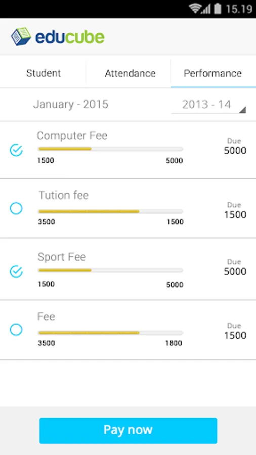 Neither you have to keep adding reminders for fee payments and miss out on any installment nor pay late payment fine as Educube App for Parents will keep track of all the fee installments to be paid and will let you pay the fees through the App itself!