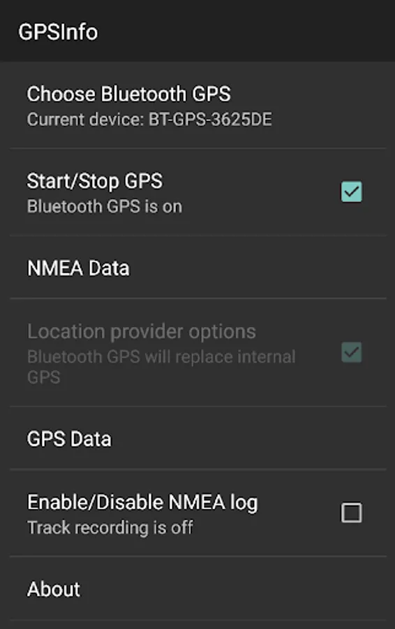 The GPSInfo App is an App that will allow you to use your external GlobalSat Bluetooth GPS receiver as your main GPS source.