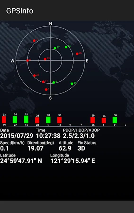 7) You should then be able to see the GPS data by tapping on "NMEA Data" and "GPS Data".