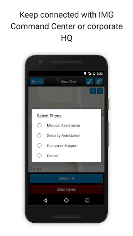 FoneTrac is a purpose-built smartphone application that can be used by travelers and overseas personnel to provide precise location information to IMG’s Global Monitoring System. This information, together with data derived from travel itineraries, is used to notify travelers of increased overseas risk or to locate them in the event of a natural disaster. Subscription to Globalsecur required for use.